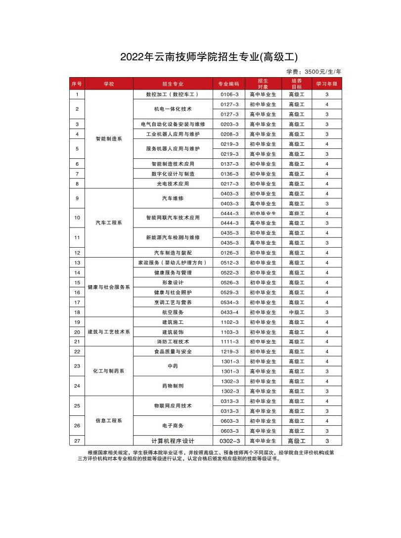 2022年云南技師學(xué)院招生簡(jiǎn)章