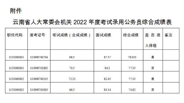 附件:云南省人大常委會(huì)機(jī)關(guān)2022年度考試錄用公務(wù)員綜合成績(jī)表