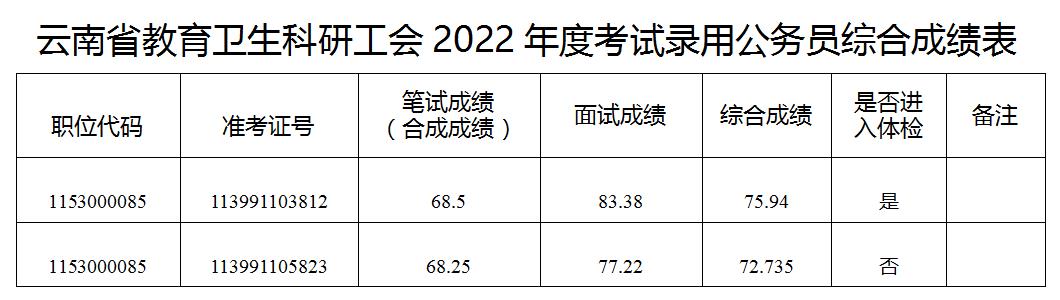 附件:云南省教育衛(wèi)生科研工會(huì)2022年度考試錄用公務(wù)員綜合成績(jī)表