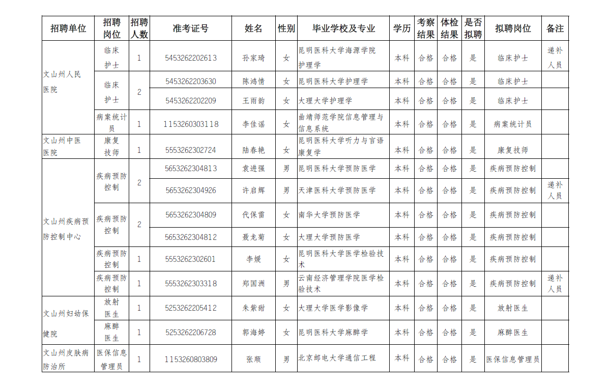 文山州衛(wèi)生健康委員會2022年直屬事業(yè)單位公開招聘工作人員擬聘公示