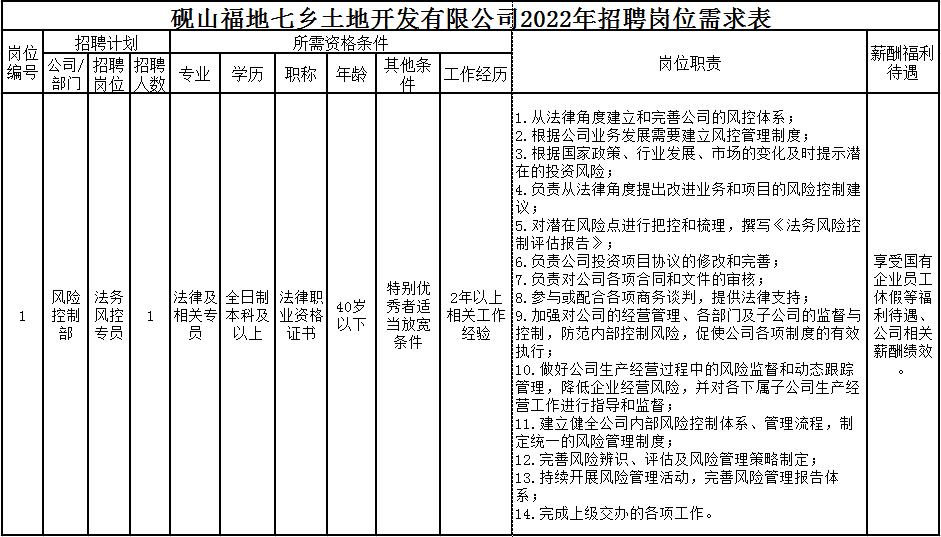 硯山福地七鄉(xiāng)土地開發(fā)有限公司成立于2016年8月,是經(jīng)硯山縣人民政府批準(zhǔn),硯山縣人民政府國有資產(chǎn)監(jiān)督管理局出資組建的具有獨(dú)立法人資格的國有獨(dú)資公司,注冊資金2億元人民幣。為滿足公司發(fā)展需求,保障公司各項工作能更有效率的開展,現(xiàn)將有關(guān)招聘事項公告如下: