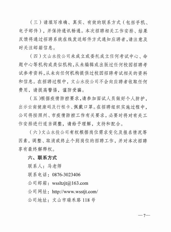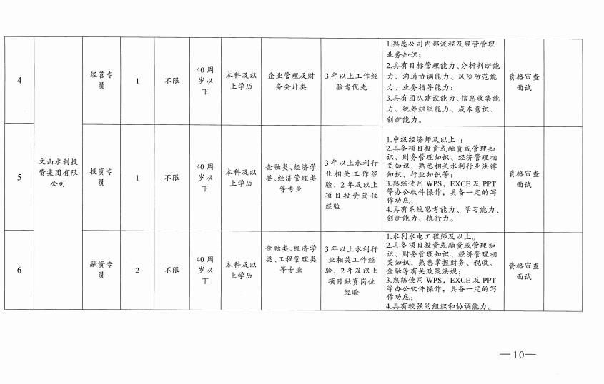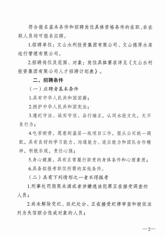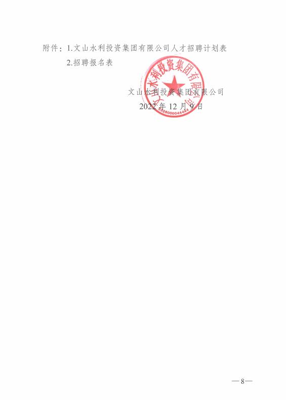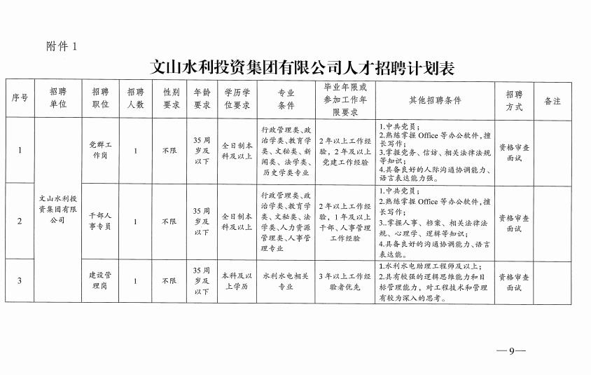 2022年文山水利投資集團有限公司工作人員招聘公告