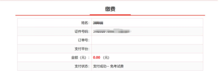 減免申請審核通過后,報名系統(tǒng)“支付狀態(tài)”欄顯示“支付成功—免考試費”字樣,如已繳納報名費的,在確認工作結(jié)束后,收費平臺按原繳費途徑退費;未繳費的報考者可不再繳費。如報考者在申請后未按下圖顯示,為確保正常參考,可先行支付報名費,待減免申請確認后將進行退費。
