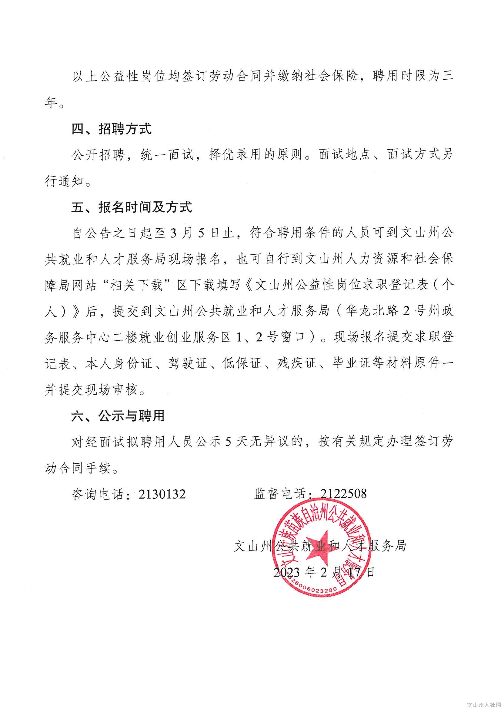 2023年文山州發(fā)展和改革委員會、文山州文化館招聘城鎮(zhèn)公益性崗位公告