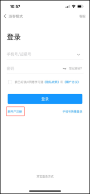 下載學(xué)習(xí)通,手機(jī)端打開學(xué)習(xí)通APP,點擊“我”頁面頂端“登錄/注冊”。首次登錄,點新用戶注冊識別本機(jī)號碼快捷注冊,想用其它手機(jī)號注冊,點擊“短信驗證碼注冊”后輸入其他手機(jī)號,獲取驗證碼,根據(jù)密碼規(guī)則設(shè)置密碼,再根據(jù)提示注冊賬號,并綁定學(xué)號(學(xué)號處為:身份證號)完善信息,如下圖所示: