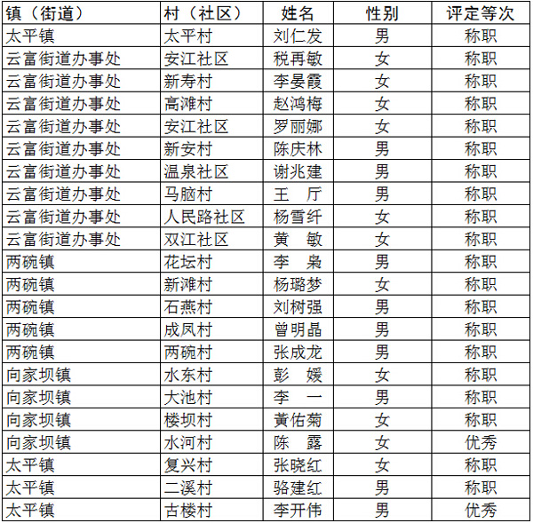 昭通市水富縣2014年大學生村官年度考核結果公示