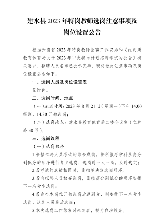 建水縣2023年特崗教師選崗注意事項及崗位設置