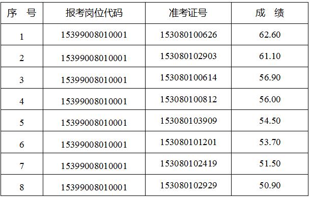 (三)資格復(fù)審人員:按照成績(jī)由高到低的順序,等額確定進(jìn)入資格復(fù)審人員名單(詳見附件)。