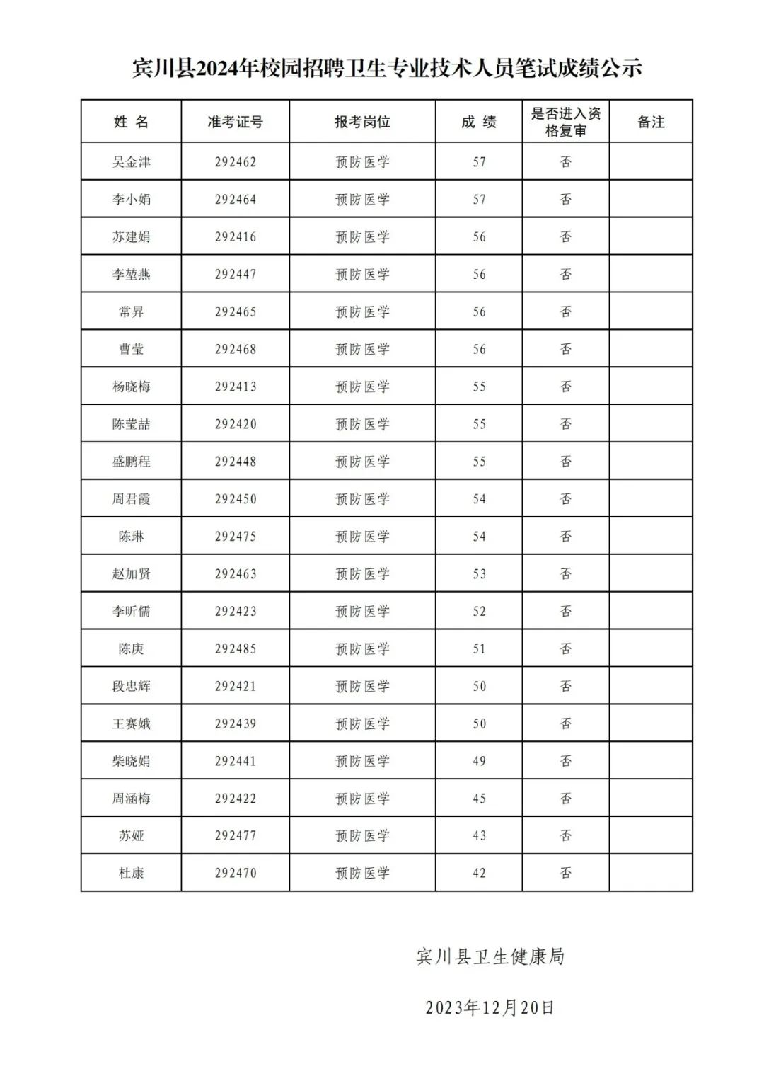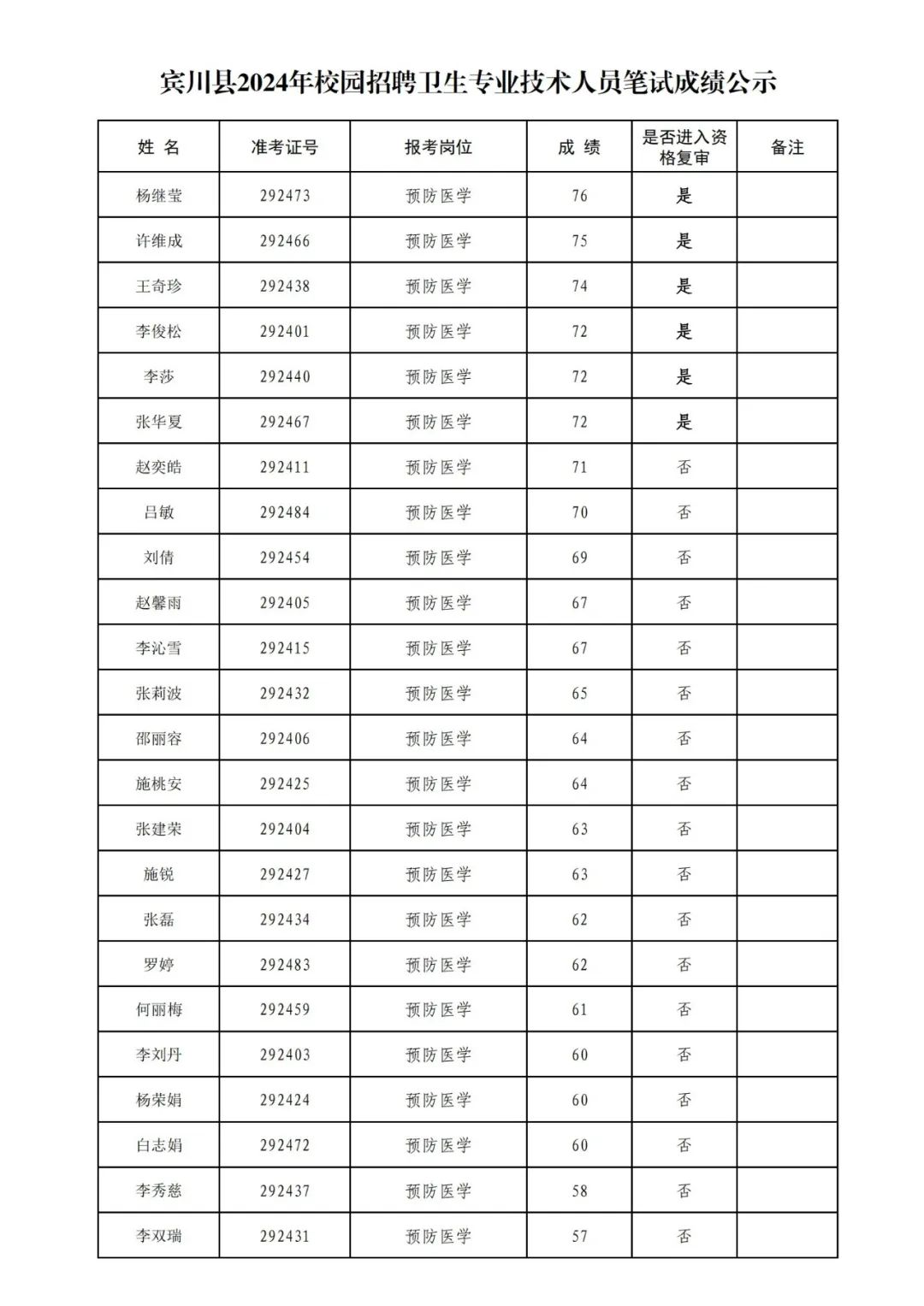 賓川縣2024年校園招聘衛(wèi)生專業(yè)技術(shù)人員筆試成績公告
