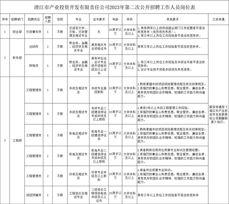 本次計(jì)劃公開招聘國有企業(yè)工作人員共13名,具體崗位及資格范圍條件詳見《澄江市產(chǎn)業(yè)投資開發(fā)有限責(zé)任公司2023年公開招聘工作人員崗位表》。