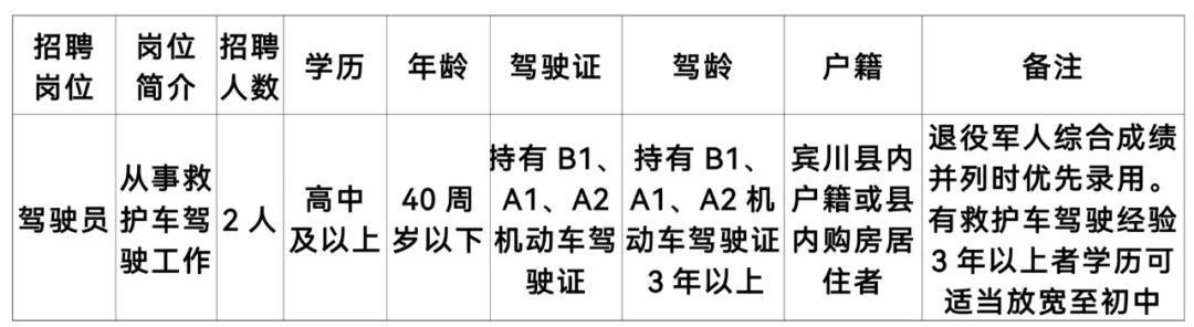 賓川縣人民醫(yī)院因業(yè)務需要,現(xiàn)面向社會公開招聘編制外救護車駕駛員,現(xiàn)將招聘有關事項公告如下: