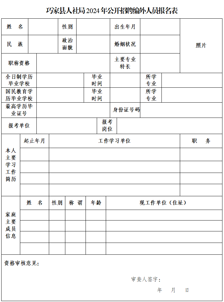 (1)巧家縣人社局2024年公開招聘編外人員報(bào)名表。