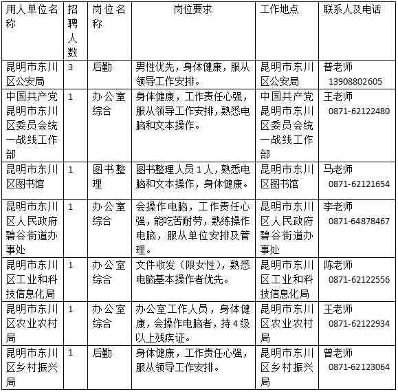 昆明市東川區(qū)公安局等七個(gè)單位公益性崗位招聘啟事