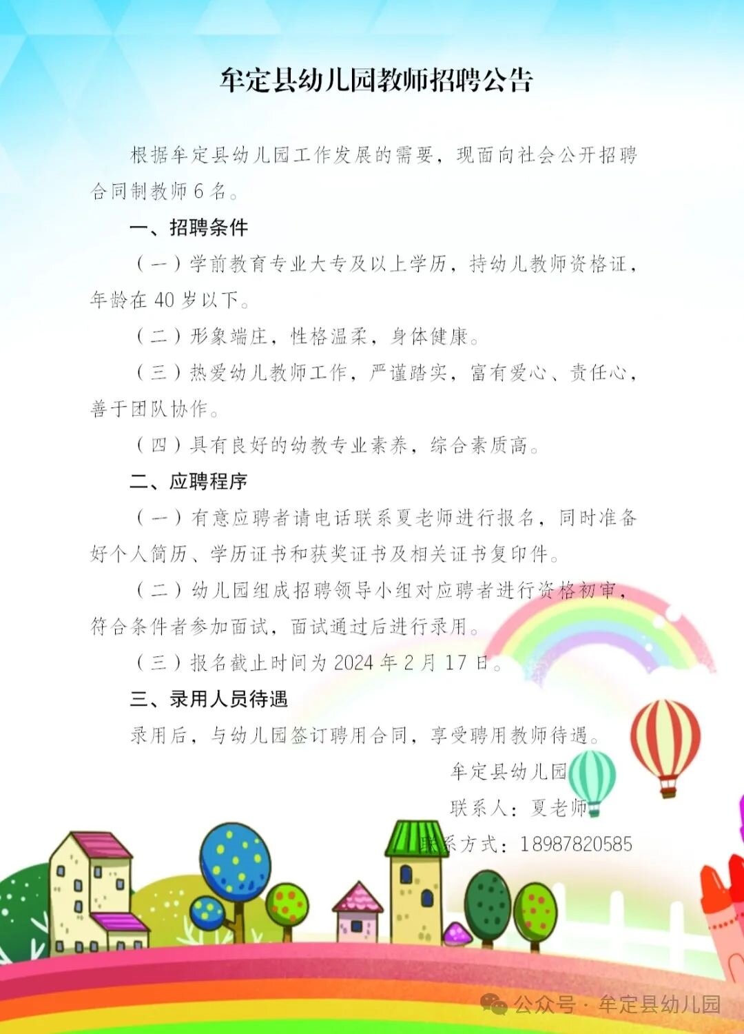 2024年楚雄州牟定縣幼兒園教師招聘公告