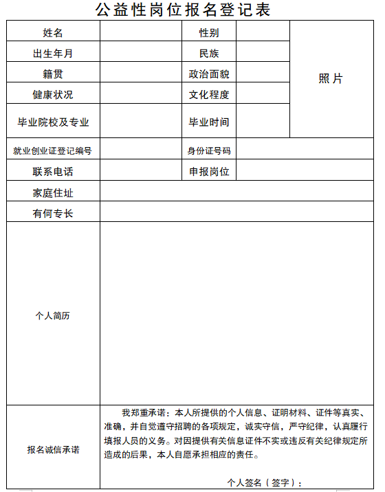 報名時間:2024年1月23日至2月6日(法定節(jié)假日除外),上午8:30-11:30,下午14:30-17:30,報名時需提供報名表、本人戶口本、身份證、畢業(yè)證、《就業(yè)創(chuàng)業(yè)證》或《就業(yè)失業(yè)登記證》等材料原件及復(fù)印件各一份。個人所提供的相關(guān)證件、資料必須真實有效,不得弄虛作假。