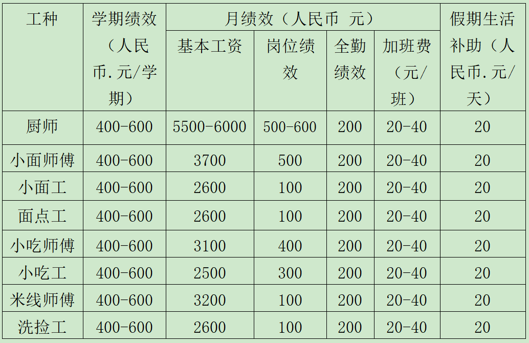 三食堂從業(yè)人員及待遇