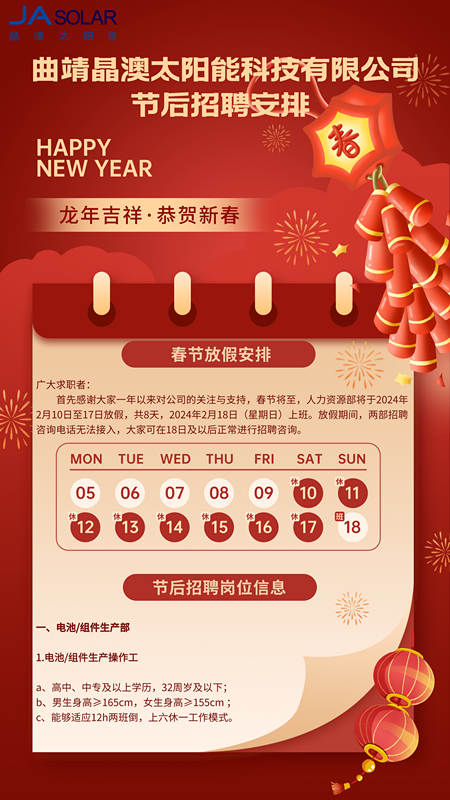 曲靖晶澳太陽(yáng)能科技有限公司招聘公告