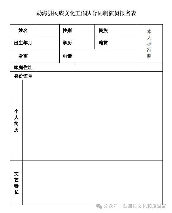 附件:勐海縣民族文化工作隊(duì)合同制演員報(bào)名表