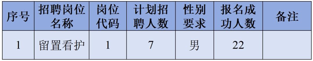 經(jīng)計(jì)算機(jī)和人工審核結(jié)合的方式對(duì)報(bào)名進(jìn)行初審?fù)ㄟ^,并繳費(fèi)成功的即為報(bào)名成功。各招聘崗位報(bào)名成功情況見表: