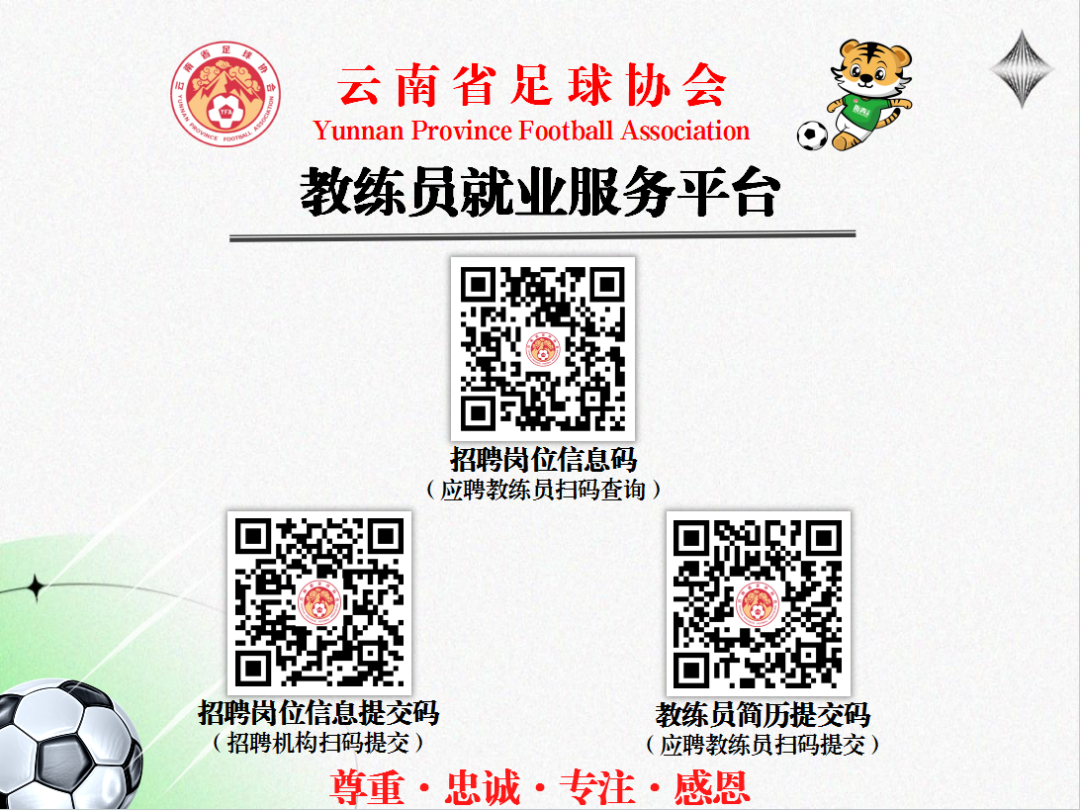 方式2:在“云南省足球協(xié)會教練員就業(yè)服務(wù)平臺”,識別“招聘崗位信息碼”查看相關(guān)崗位職責和要求,識別“教練員簡歷提交碼”填寫相關(guān)信息并提交簡歷,完成報名。