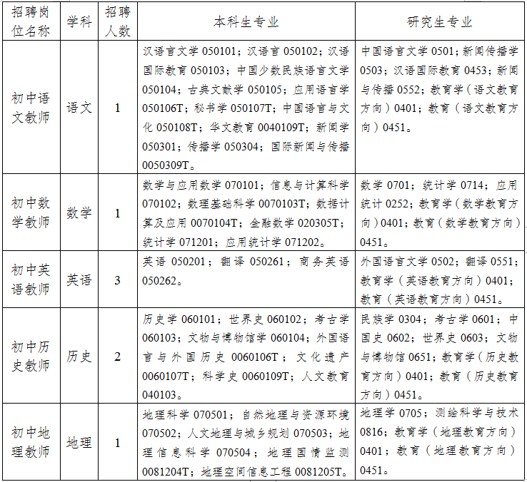 2.普通招生計(jì)劃一本院校(或一本專業(yè))及以上學(xué)歷2022年、2023年、2024年優(yōu)秀畢業(yè)生,所學(xué)專業(yè)與招聘教學(xué)崗位要求相符(未在編在崗,在校期間總體成績(jī)優(yōu)異,所學(xué)專業(yè)必修科目無(wú)掛科且須在資格復(fù)審時(shí)提供相應(yīng)的教師資格證)。