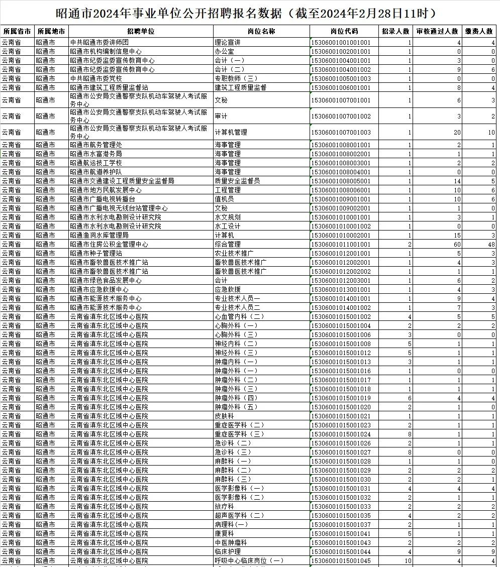 最新數(shù)據(jù)!昭通市2024年事業(yè)單位公開招聘報(bào)名數(shù)據(jù)(截至2024年2月28日11時(shí))