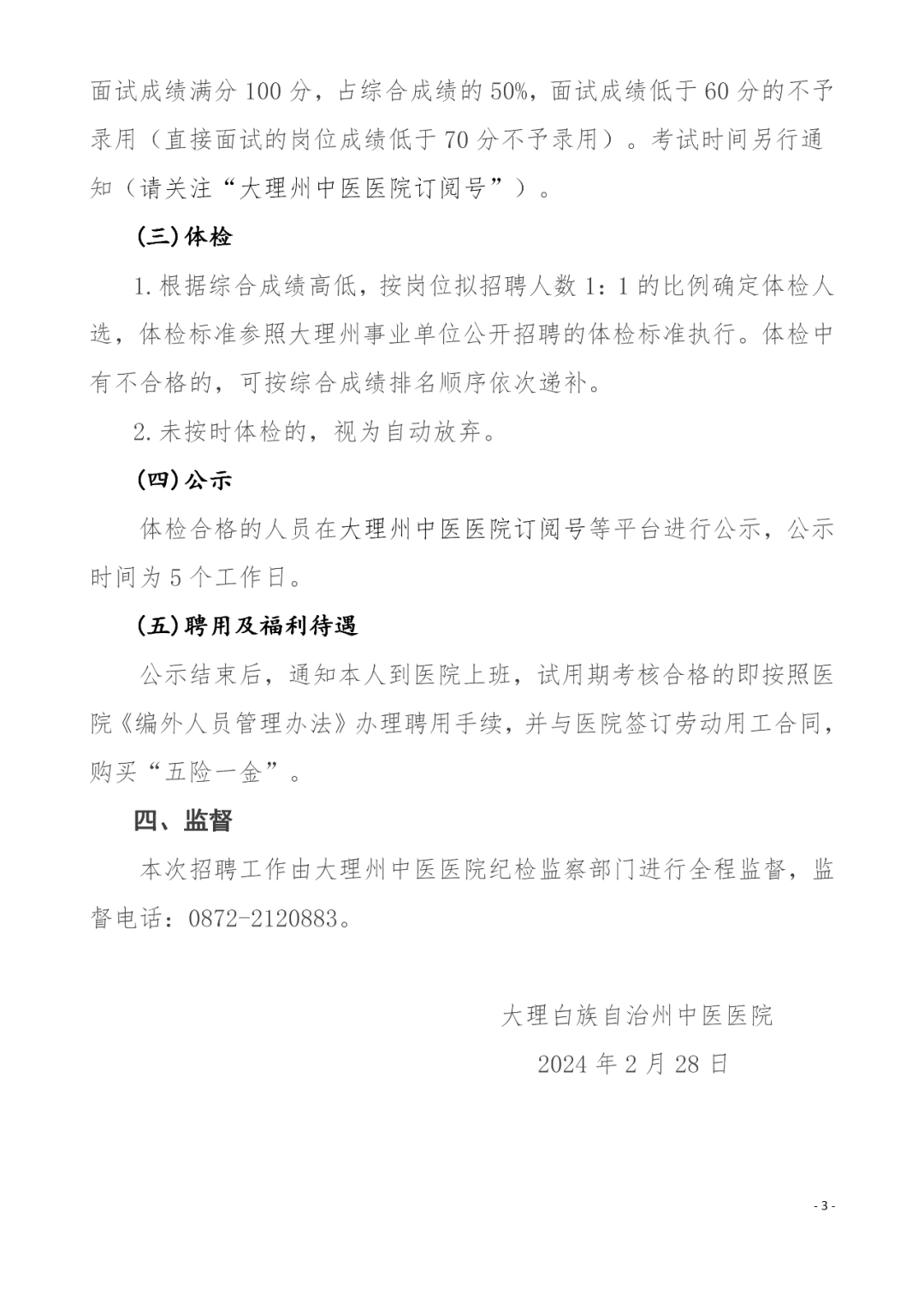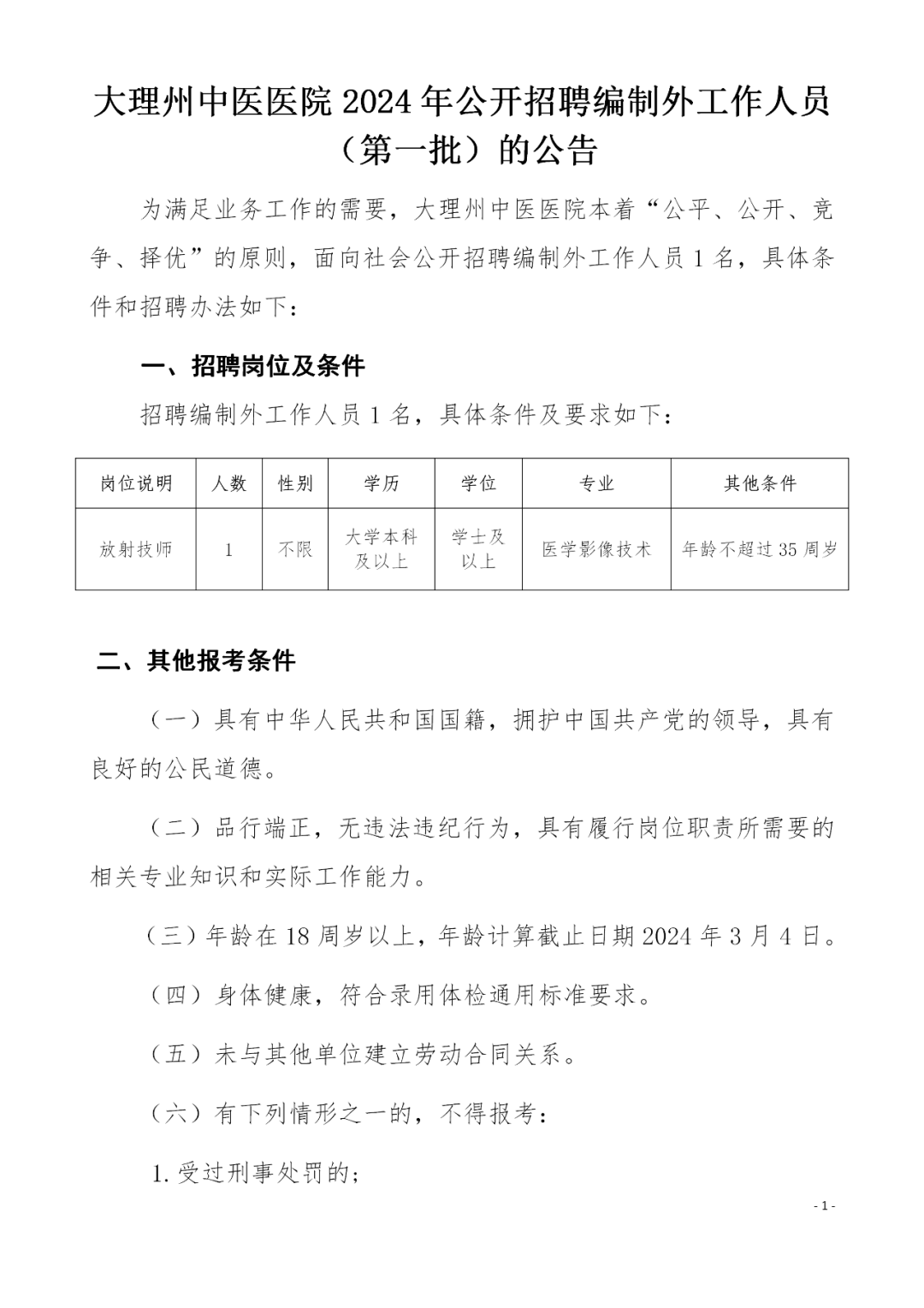 大理州中醫(yī)醫(yī)院2024年公開(kāi)招聘編制外工作人員(第一批)的公告