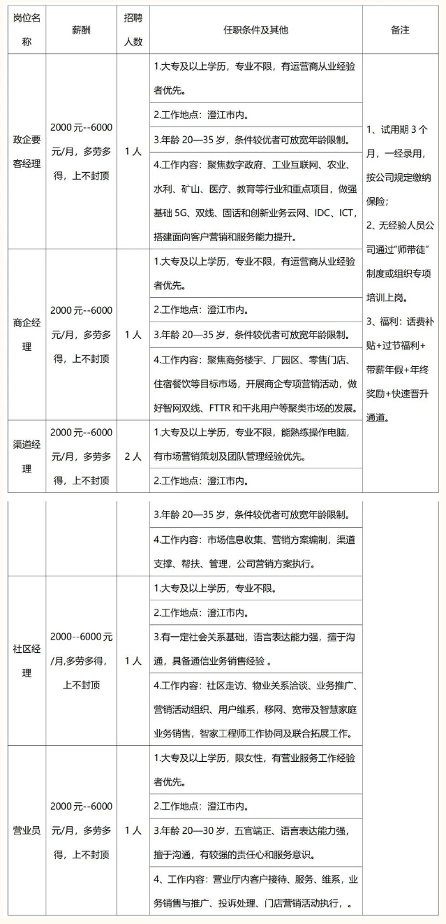 中國(guó)聯(lián)通澄江市分公司人員招聘公告