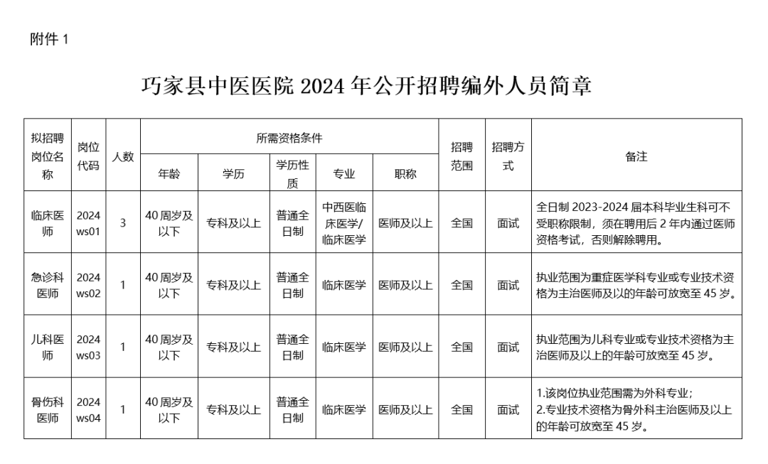 (一)崗位設置:詳見附件《巧家縣中醫(yī)醫(yī)院2024年公開招聘編外人員簡章》。