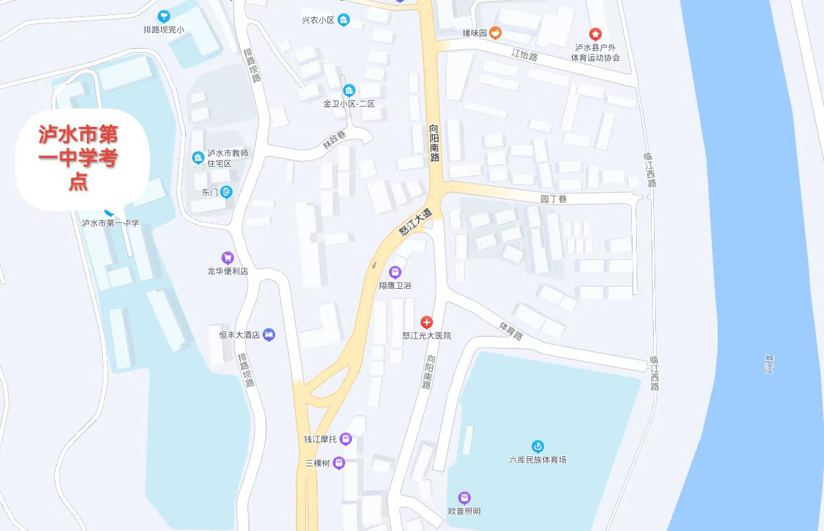 (一)怒江州民族中學(xué)考點(diǎn):瀘水市大練地街道辦事處文苑路(新城區(qū)教師小區(qū)旁)