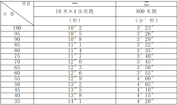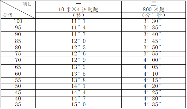 1.體能測試科目:800米、10米*4往返跑;