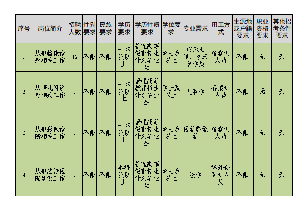 為進(jìn)一步加強(qiáng)醫(yī)院人才隊(duì)伍建設(shè),滿(mǎn)足醫(yī)院學(xué)科發(fā)展的人才需求,提升醫(yī)院醫(yī)療服務(wù)能力,經(jīng)醫(yī)院研究決定,并報(bào)請(qǐng)上級(jí)主管部門(mén)審批同意,采取校園招聘的方式招聘工作人員,現(xiàn)將有關(guān)事宜通告如下: