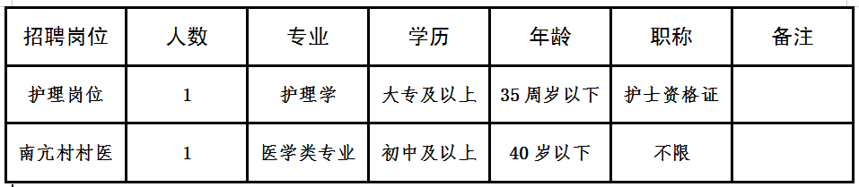 因人員變動,根據(jù)工作需要,本著公開、公平、公正的原則,擬面向社會公開招聘1名編外人員、1名村醫(yī)。