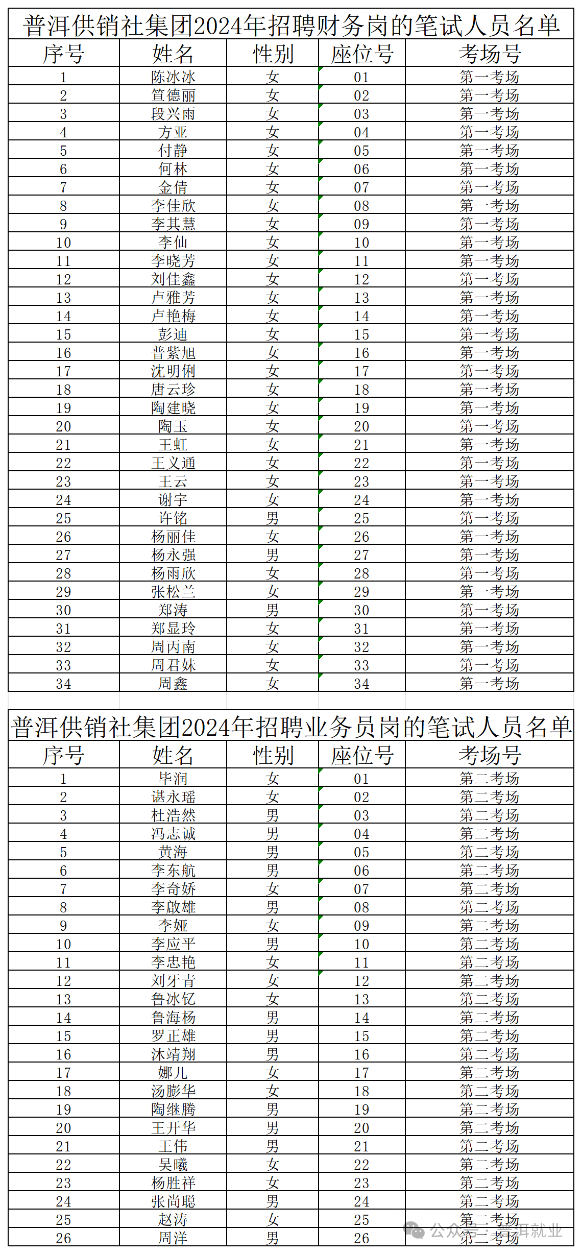 關(guān)于普洱供銷集團(tuán)2024年上半年招聘考試安排及進(jìn)入筆試人員名單的公告
