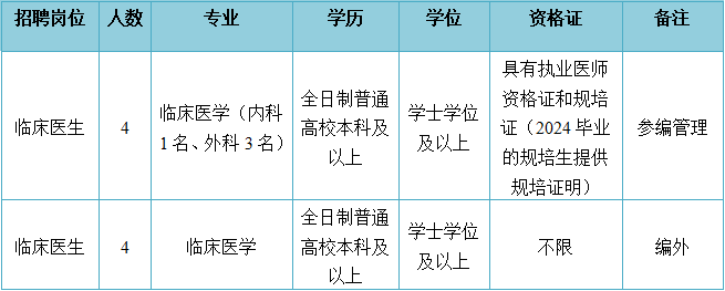 具有執(zhí)業(yè)醫(yī)師資格證并持有規(guī)培證的,工資和績效參照編制內(nèi)同級人員執(zhí)行,并給予住房補(bǔ)貼15萬元;具有執(zhí)業(yè)醫(yī)師資格證的,工資和績效參照編制內(nèi)同級人員執(zhí)行;其他人員的工資按醫(yī)院編外工資發(fā)放,績效與科室人員同崗?fù)辏瑔挝话匆?guī)定繳納“五險(xiǎn)一金”。