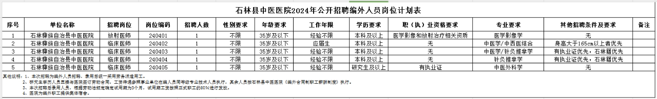 附件:《石林縣中醫(yī)醫(yī)院2024年面向社會(huì)公開招聘編外人員崗位計(jì)劃表》