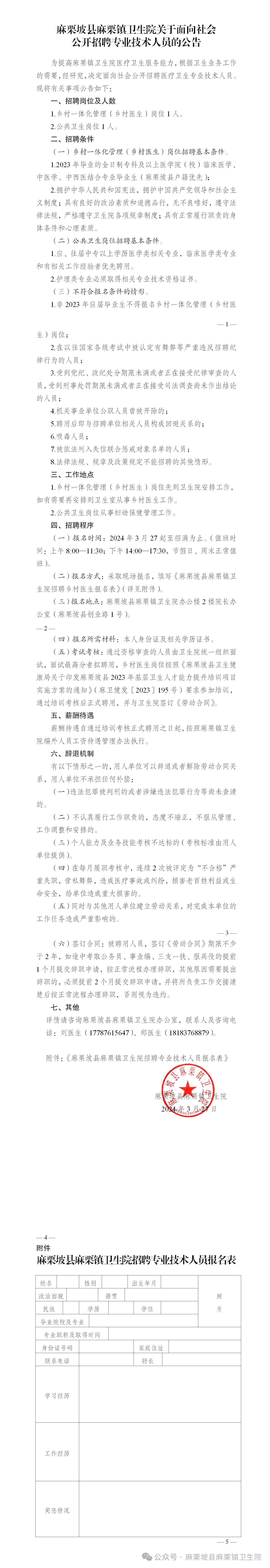 麻栗坡縣麻栗鎮(zhèn)衛(wèi)生院關(guān)于面向社會公開招聘專業(yè)技術(shù)人員的公告