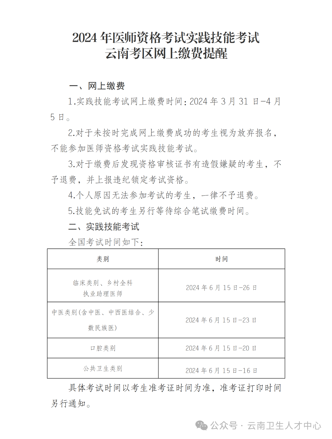2024年云南省醫(yī)師資格考試實踐技能考試網(wǎng)上繳費提醒