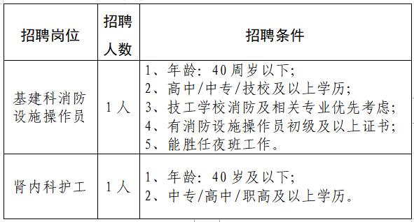 【招聘】基建科、腎內(nèi)科需招聘勞務(wù)派遣工作人員2名