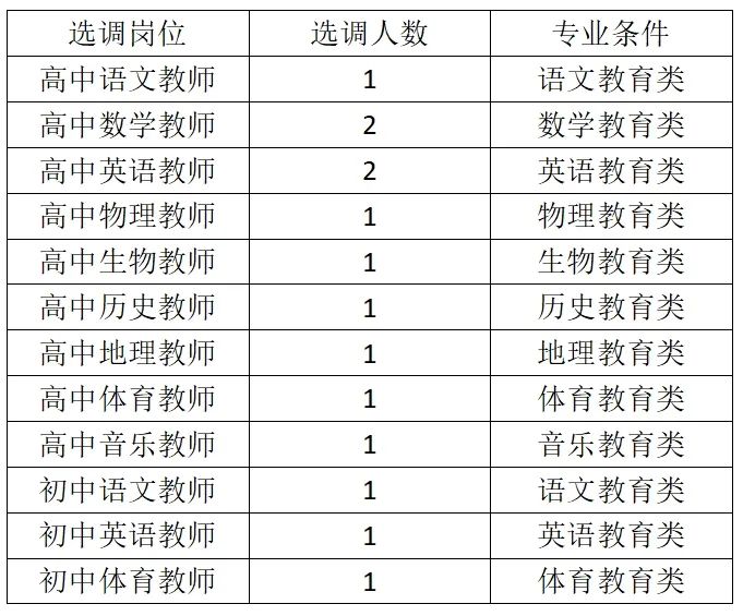 高中:面向市內(nèi)外高中教師公開選調(diào)。