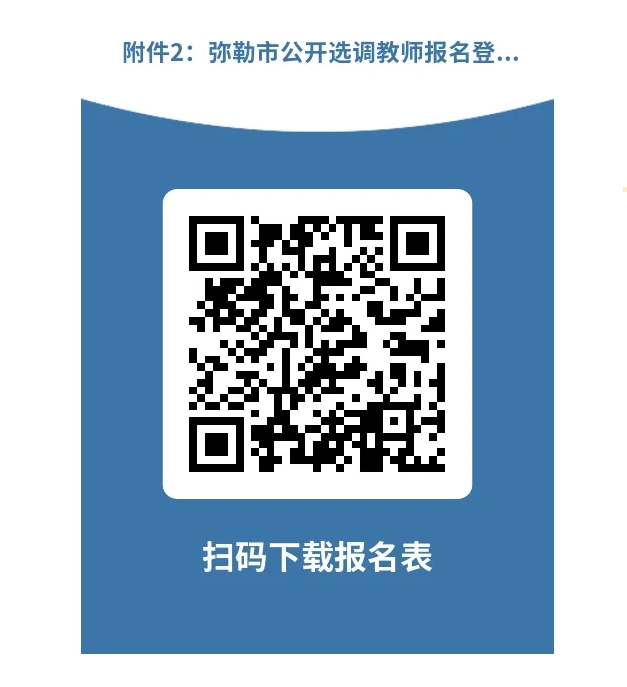 2.報考人員自行下載填寫《彌勒市公開選調(diào)教師報名登記表》,經(jīng)現(xiàn)任教學(xué)校審核簽章后方可報名。報名時需提交《彌勒市公開選調(diào)教師報名登記表》一式二份,身份證、畢業(yè)證、教師資格證、專業(yè)技術(shù)資格證等相關(guān)有效證件、證書原件及復(fù)印件各一式一份。網(wǎng)絡(luò)報名的資格復(fù)審時提交。