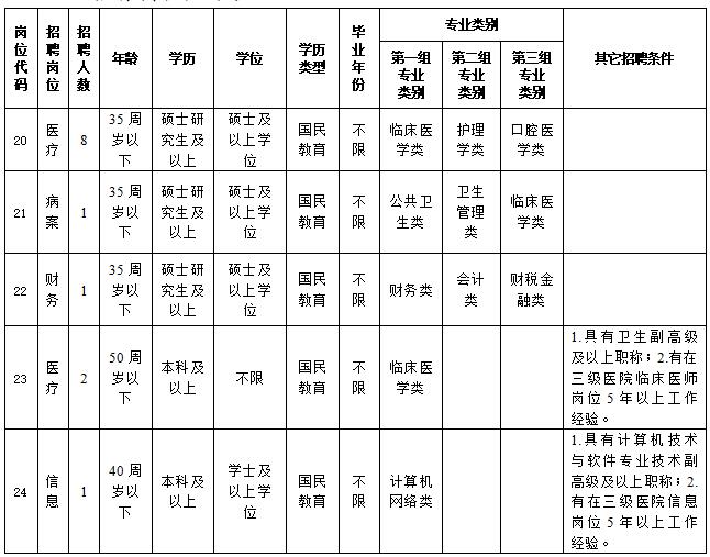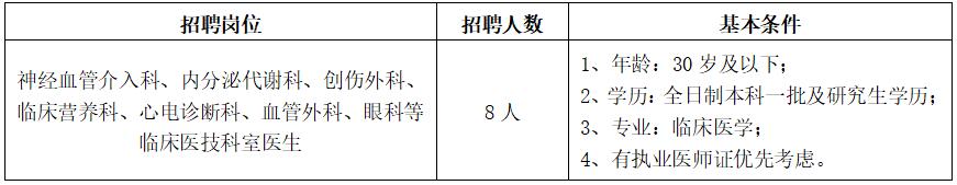此次將同時進行編外醫(yī)生的招聘及簽約,崗位及基本條件如下: