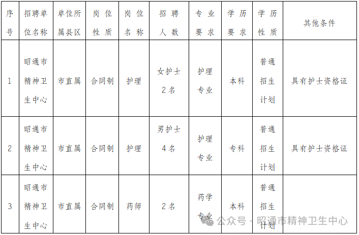 昭通市精神衛(wèi)生中心2024年第二次公開招聘合同制人員通告