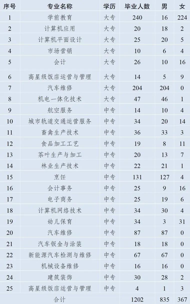 2024屆畢業(yè)班級(jí)74個(gè),畢業(yè)生總?cè)藬?shù)2212人,繼續(xù)升學(xué)1010人,需推薦就業(yè)人數(shù)1202人,專業(yè)情況具體如下: