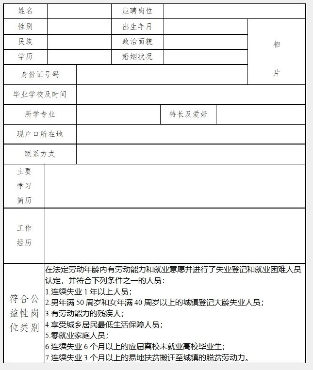 附:2024年中共普洱市委政策研究室公益性崗位招聘申請表.doc