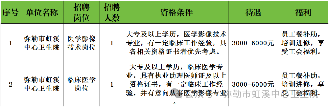 彌勒市虹溪中心衛(wèi)生院招聘編外專業(yè)技術(shù)人員公告
