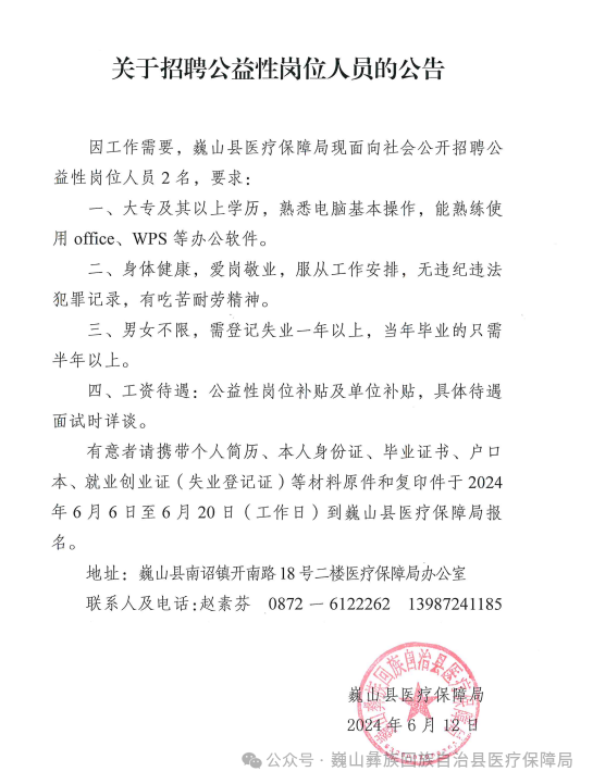 2024年大理州巍山縣醫(yī)療保障局招聘公益性崗位人員公告