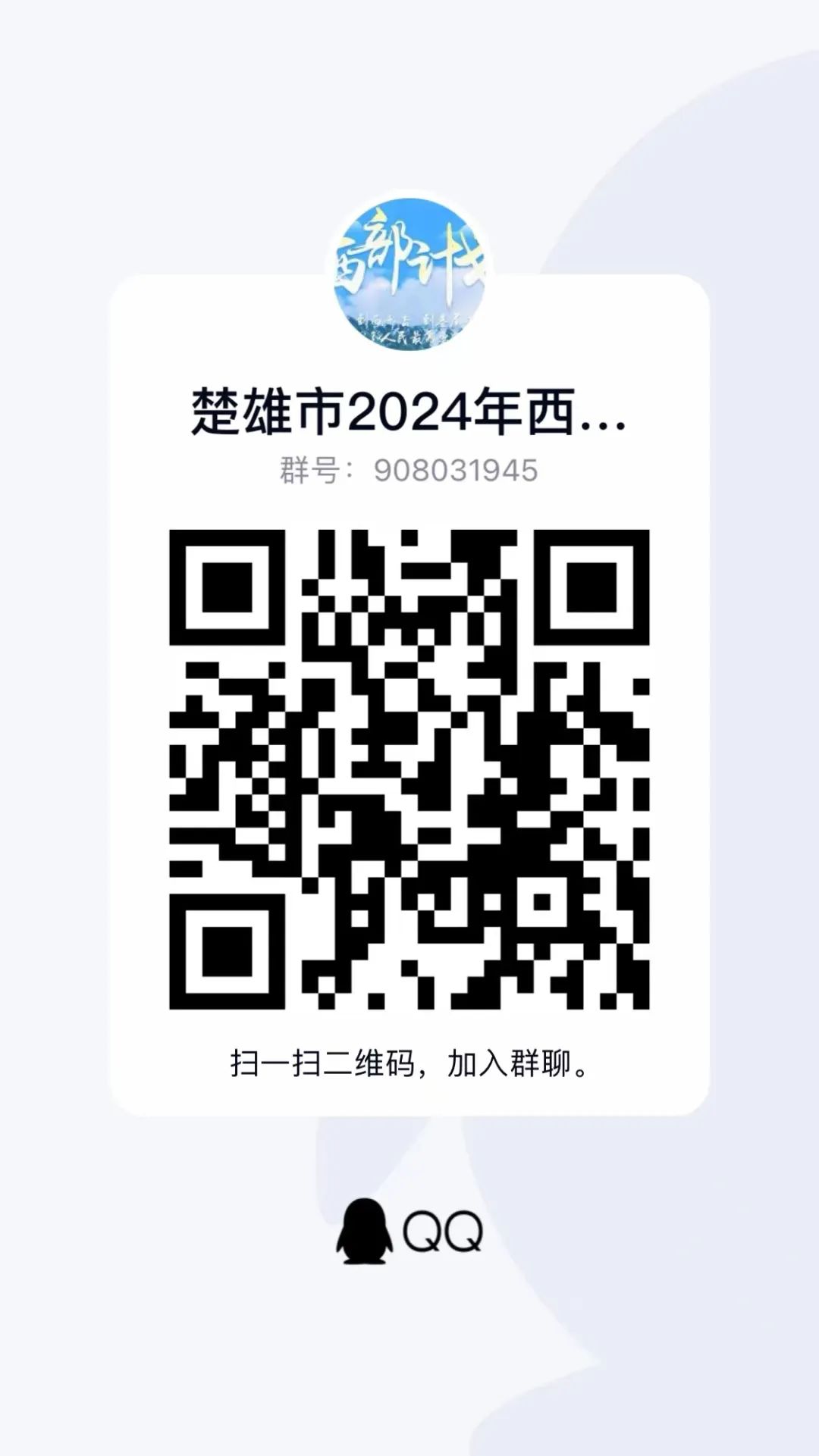 請成功報(bào)名并通過審核楚雄市2024—2025年度大學(xué)生志愿服務(wù)西部計(jì)劃地方項(xiàng)目的考生,掃描二維碼加入QQ群,并填寫驗(yàn)證信息“姓名+畢業(yè)學(xué)校”(請與報(bào)名信息保持一致),工作人員將進(jìn)行審核,筆試時(shí)間定于 6 月 22 日(星期六) 14:30—16:30,考試地點(diǎn)為東興中學(xué)體育館,具體筆試公告以“楚雄市共青團(tuán)”公眾號后續(xù)發(fā)布為準(zhǔn)。