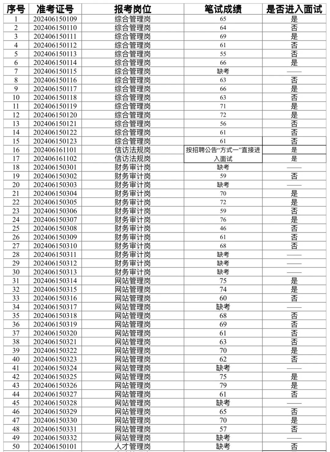 招聘聘用(任)人員筆試成績(jī)及進(jìn)入面試人員名單公告