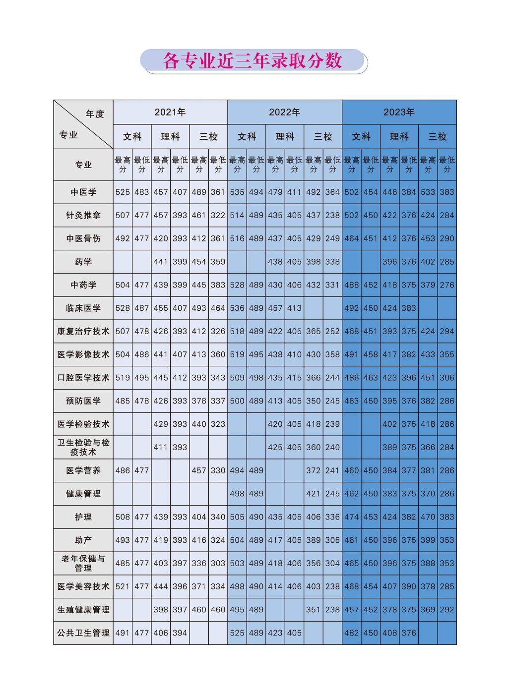 2021-2023年保山中醫(yī)藥高等專科學校普通專科各專業(yè)錄取分數線(云南)